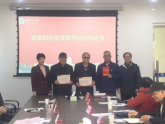 为致敬上一届已卸任党支部书记,处党委书记肖品龙、处长张涛为已卸任党支部书记代表颁发纪念证书,感谢他们的辛勤奉献。随后,肖品龙宣读新一届离退休人员党支部委员会成员任职文件,勉励新任支部书记和支委强化责任担当,不断提高政治判断力、政治领悟力、政治执行力,筑牢离退休人员党支部战斗堡垒。