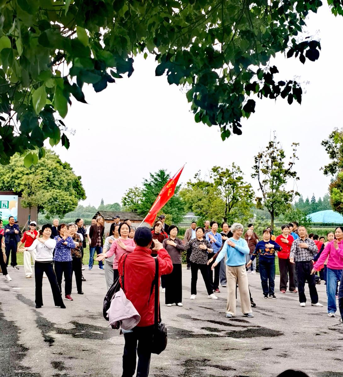 此外,太极班学员带来了太极功夫扇与陈氏太极拳的精彩展示;肖克娟老师带领八段锦爱好者演练八段锦。随着悠扬的音乐响起,同行的其他同志也纷纷加入,有板有眼地跟着练习,为活动增添了无限乐趣。当《我唱赞歌献祖国》的音乐声响起,老同志们开启了卡拉OK之旅。虽是业余爱好,但一腔一调尽显专业水准。一首首歌唱祖国、歌唱美好生活的歌曲相继开唱,让全体参加春游的老师享受了一场视听盛宴。