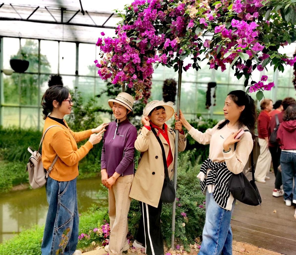 活动中,老同志们结伴走进蝴蝶活体馆,一件件精致的蝴蝶标本仿佛将翩跹飞舞的灵动瞬间定格于此,让大家沉浸在梦幻与神奇交织的氛围里。在三角梅、紫月季与大红月季的簇拥下,大家欢声笑语,争相定格美好瞬间。萌宠乐园里,投喂逗趣、合影留念,欢声笑语此起彼伏,重拾野趣盎然的儿时记忆。休憩亭中,老同志们围坐小聚,畅谈生活趣事与人生感悟,共话田园诗画般的美好时光。
